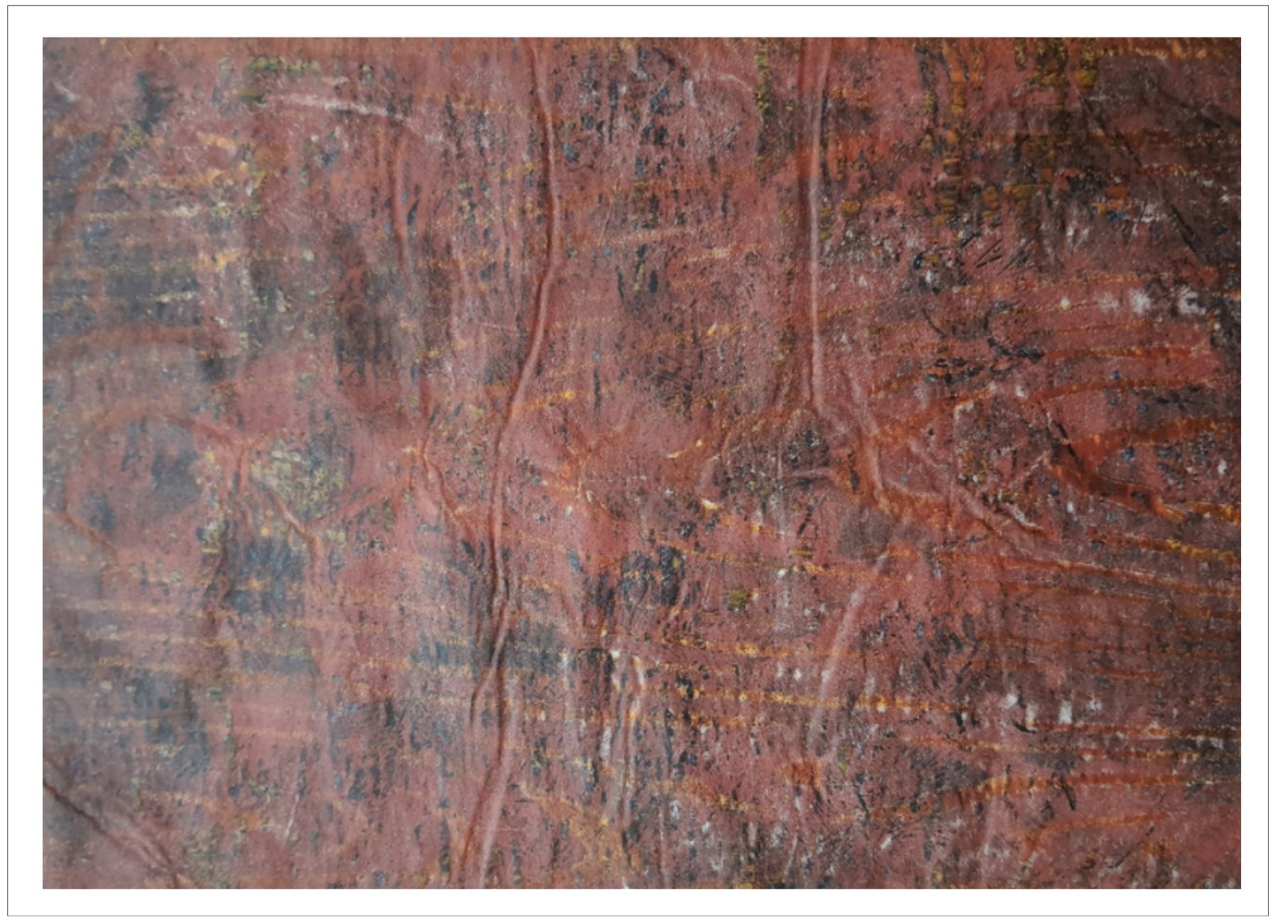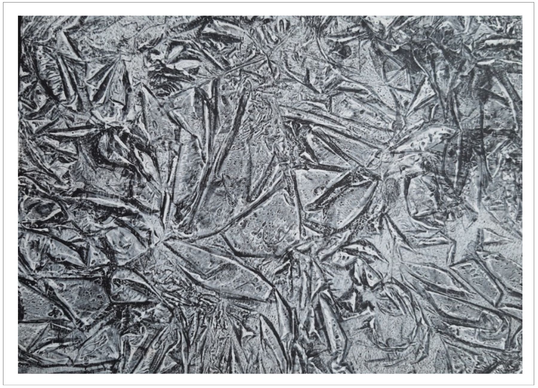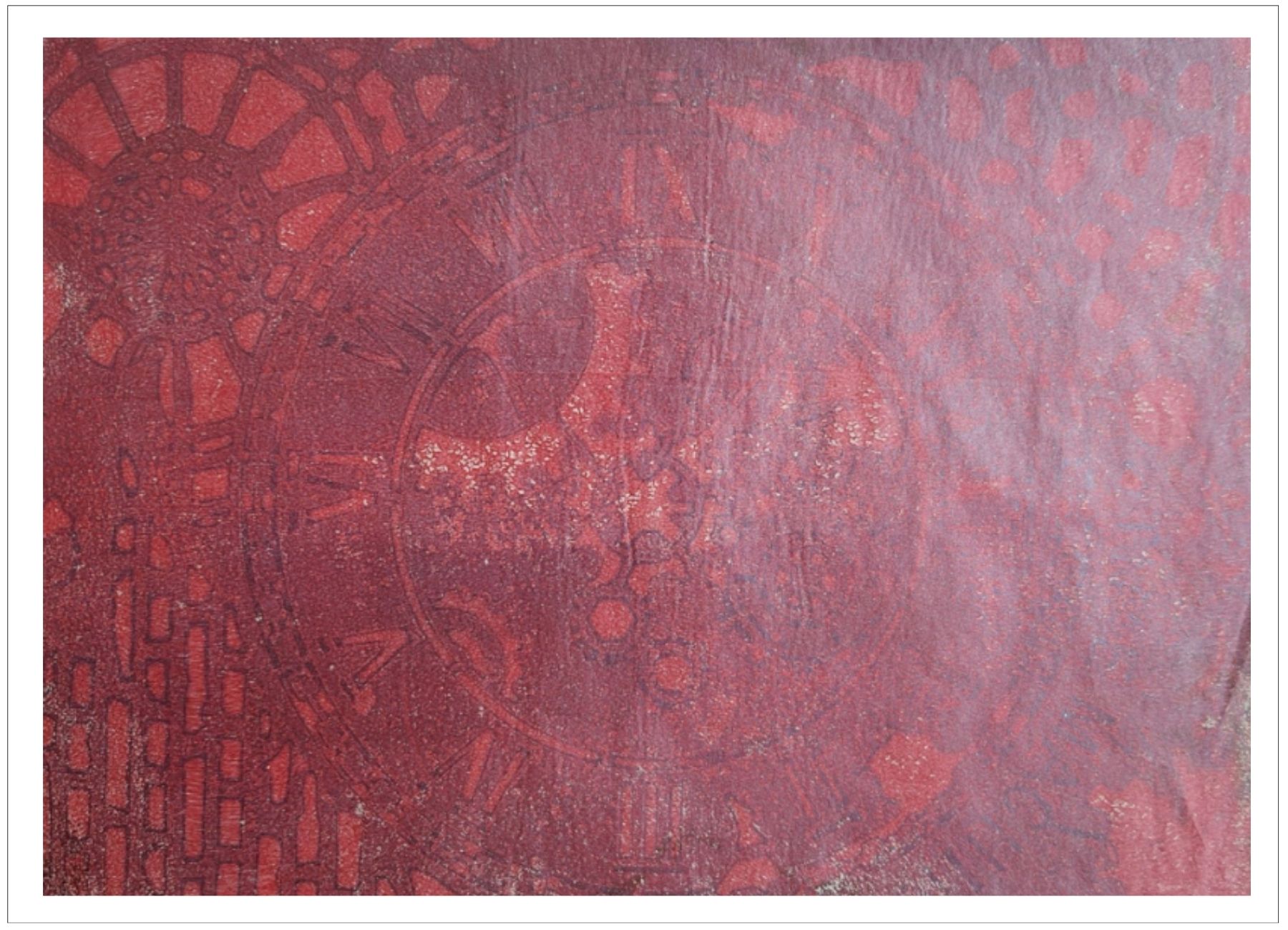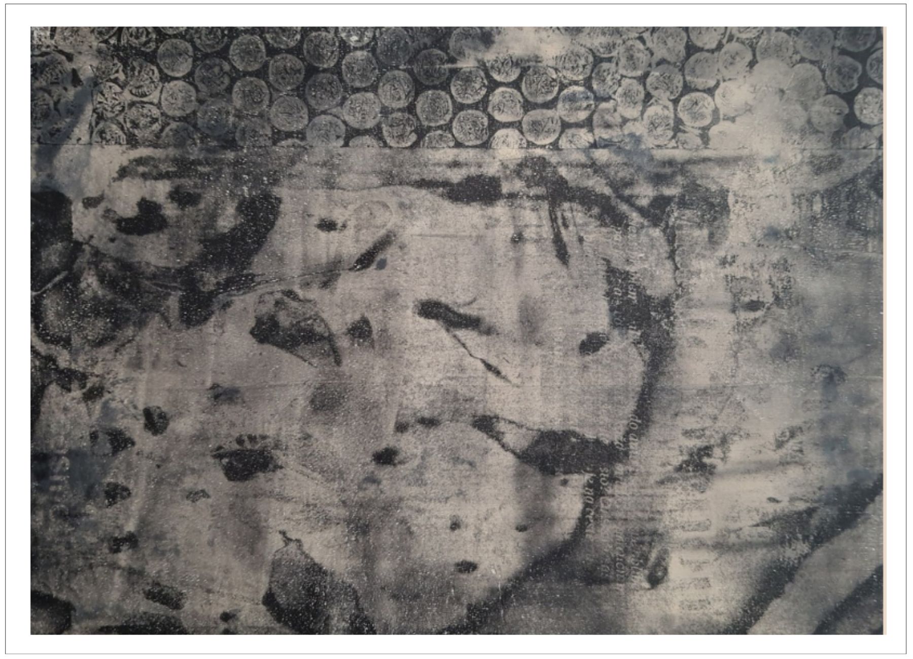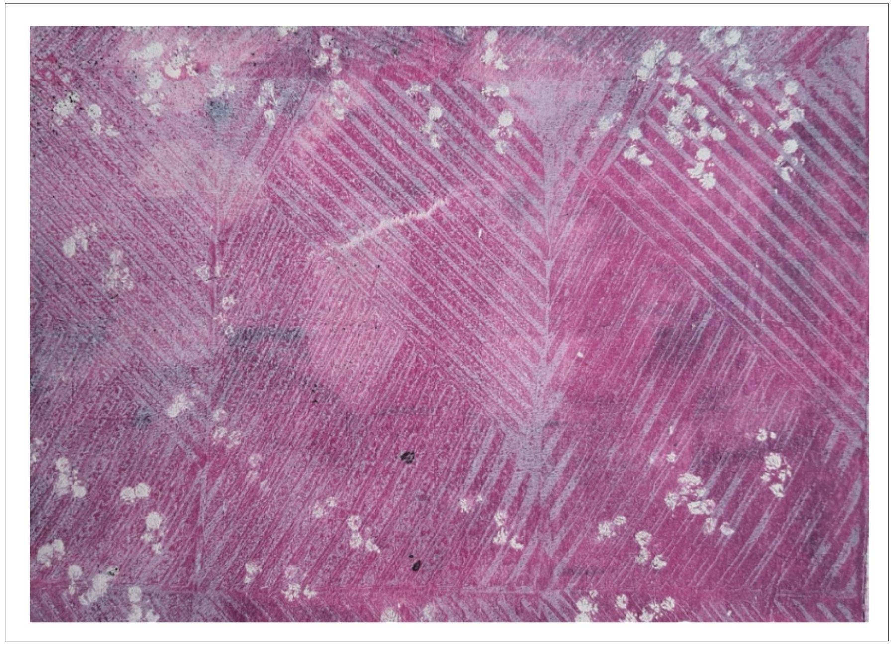 Každý otisk vzniká postupným přidáváním vrstev, tvarů a textur. Proces je hravý a otevřený – nikdy není úplně jasné, jak bude výsledný obraz vypadat.