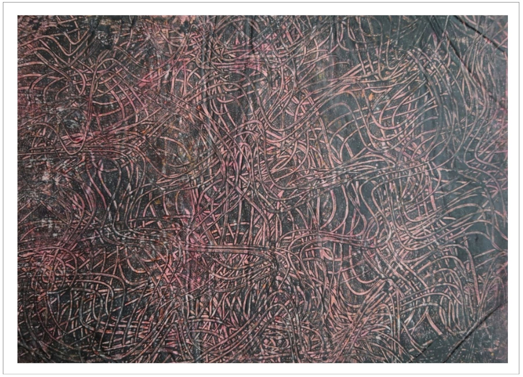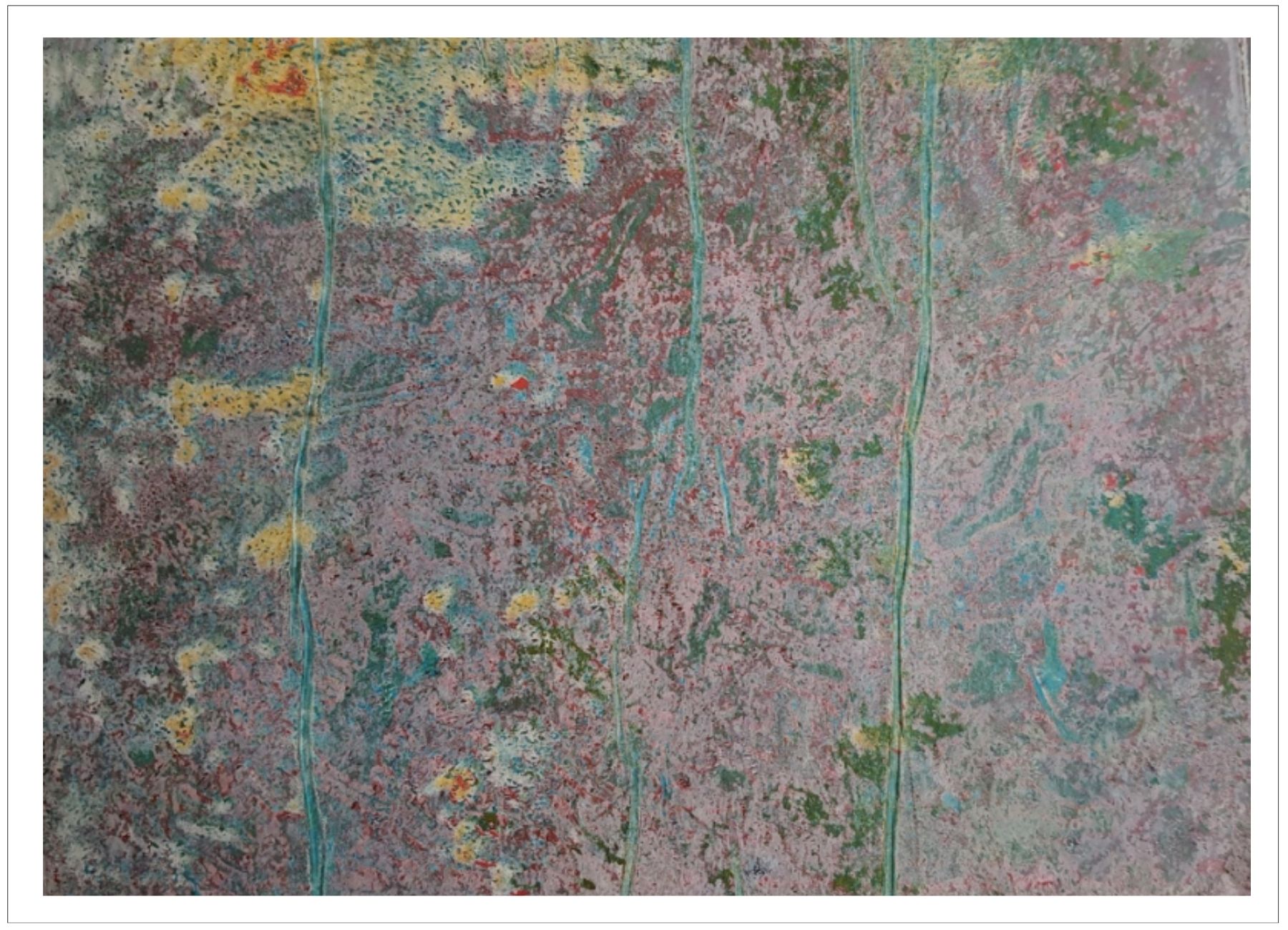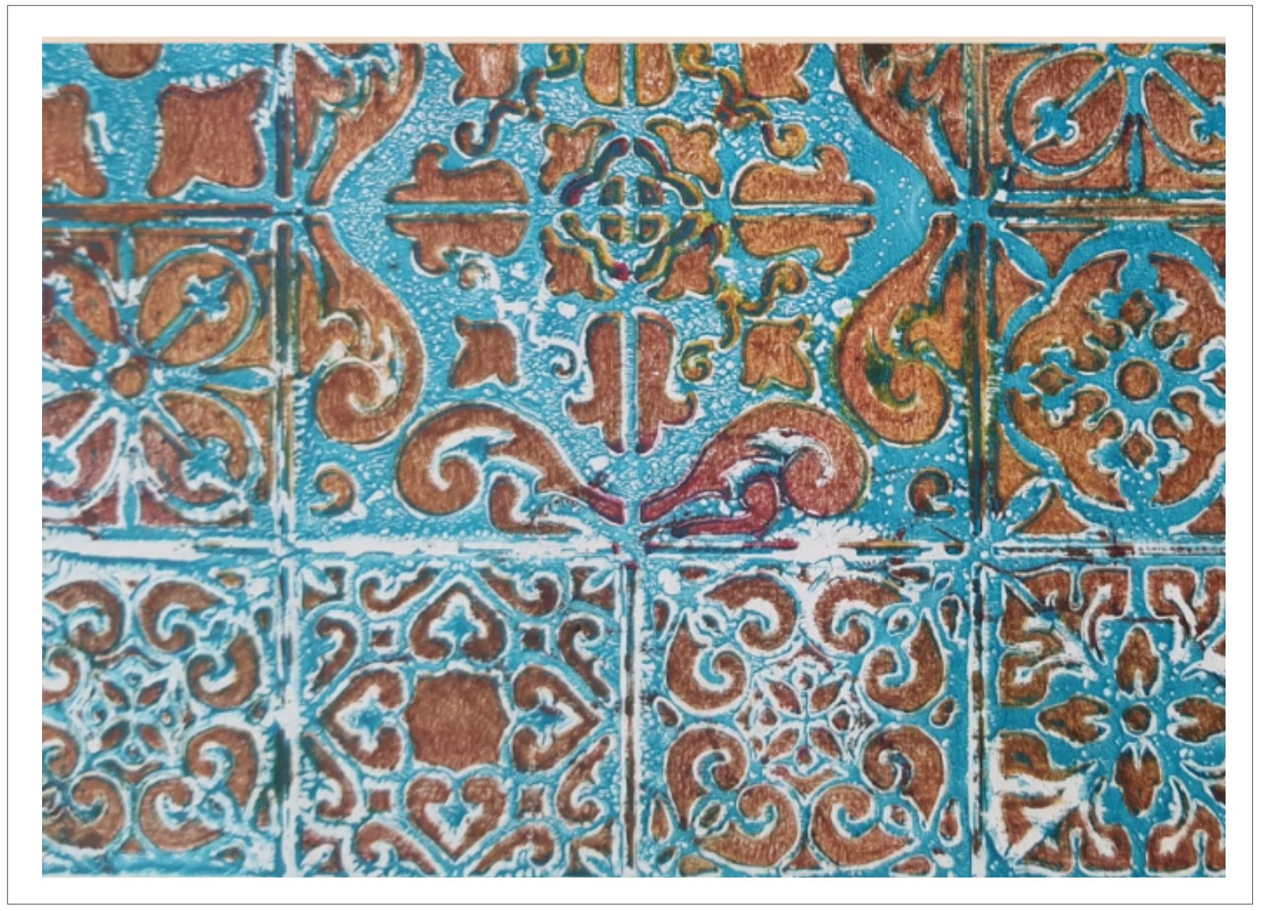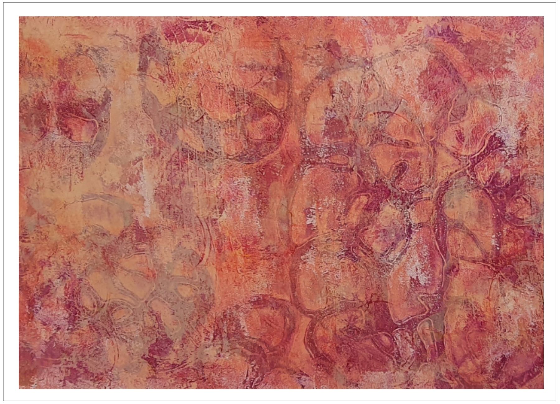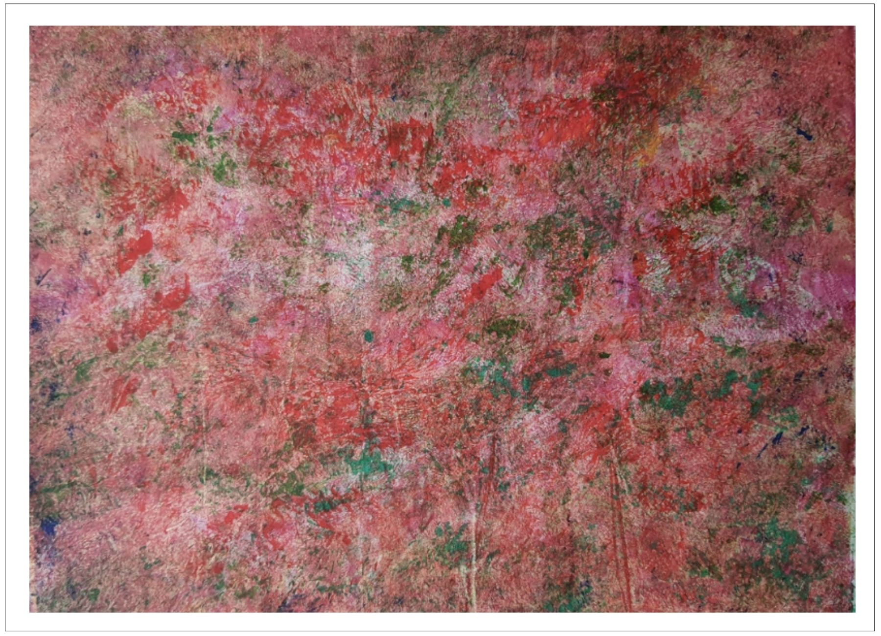 Každý otisk vzniká postupným přidáváním vrstev, tvarů a textur. Proces je hravý a otevřený – nikdy není úplně jasné, jak bude výsledný obraz vypadat.