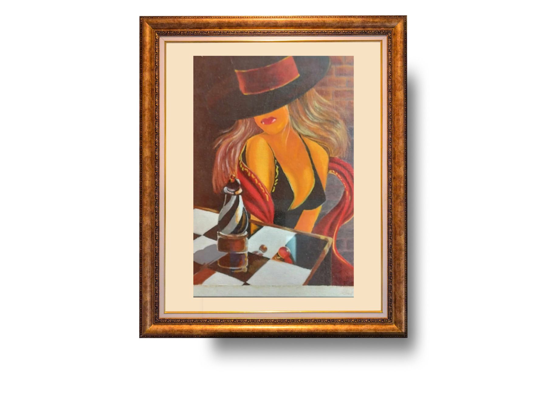 Dáma v klobouku. Rozměr 29x20 cm. Malováno na canvas papíru.