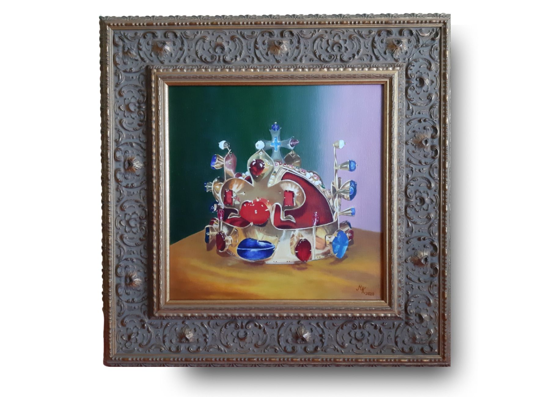 Koruna Karla IV. Rozměr plátna 30x30 cm. Malováno cca 2 roky metodou omyl - pokus. Obraz dělá radost v rodině.