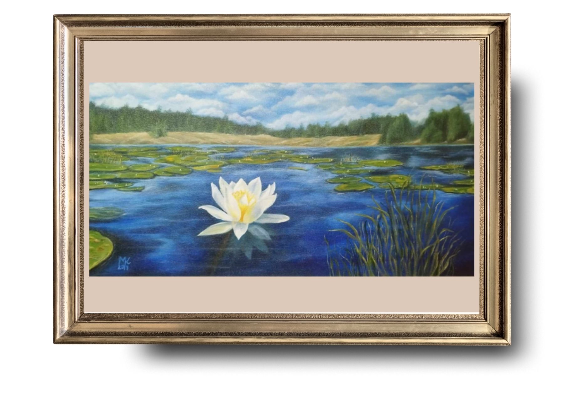 Leknín. Rozměr cca 30x59 cm. Obraz má již svého majitele.