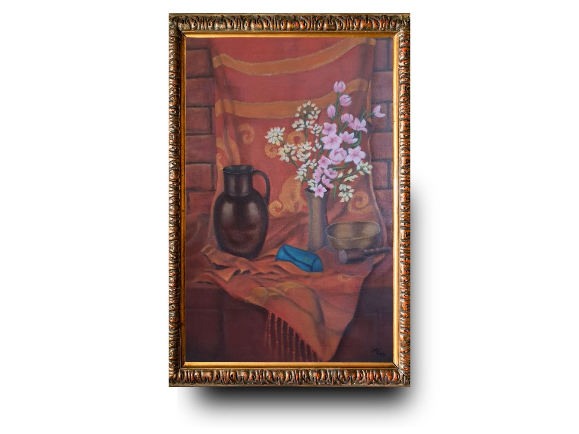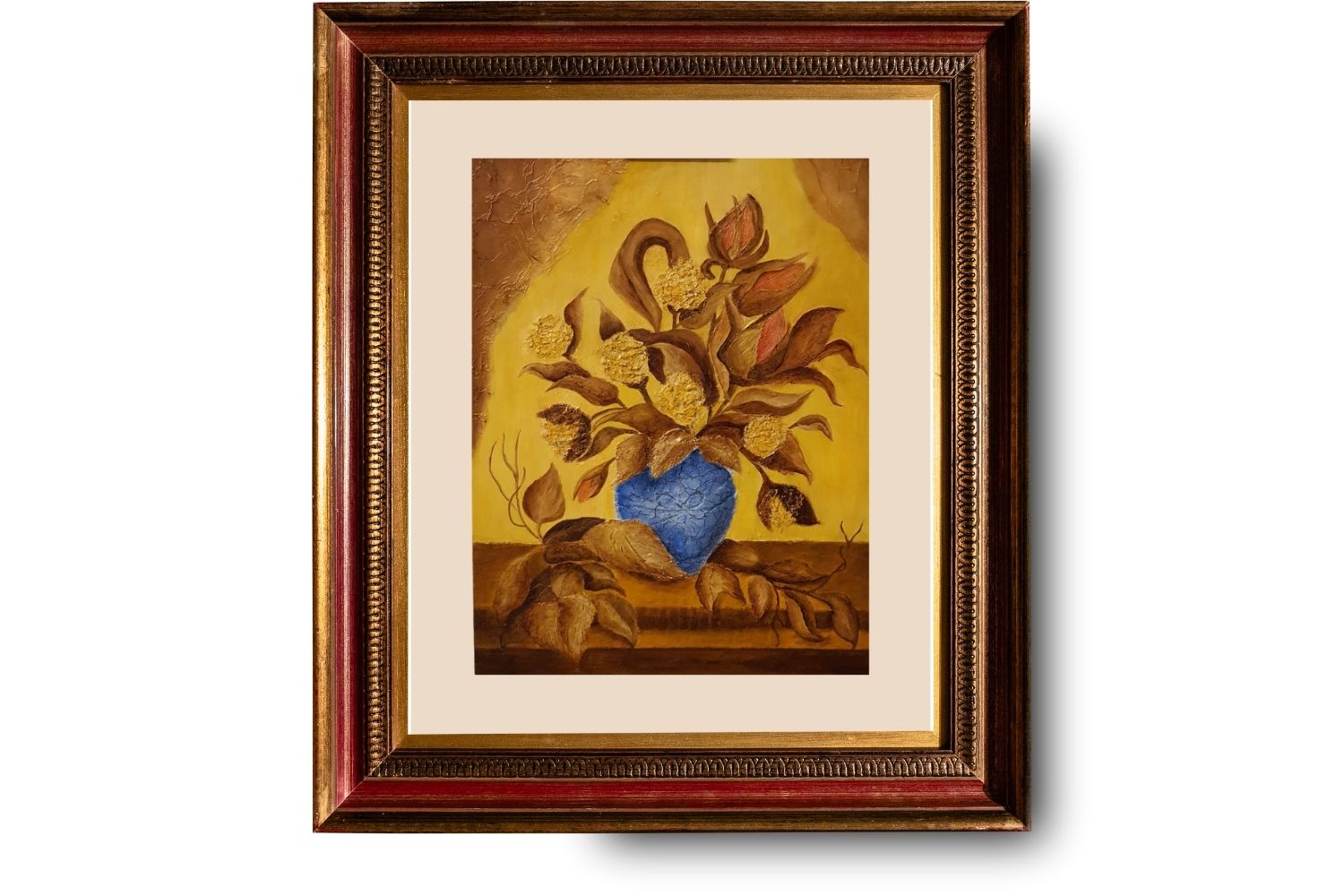 Monochromatické zátiší. Rozměr cca 35x45 cm. Malováno na desce. Zdroj: AI