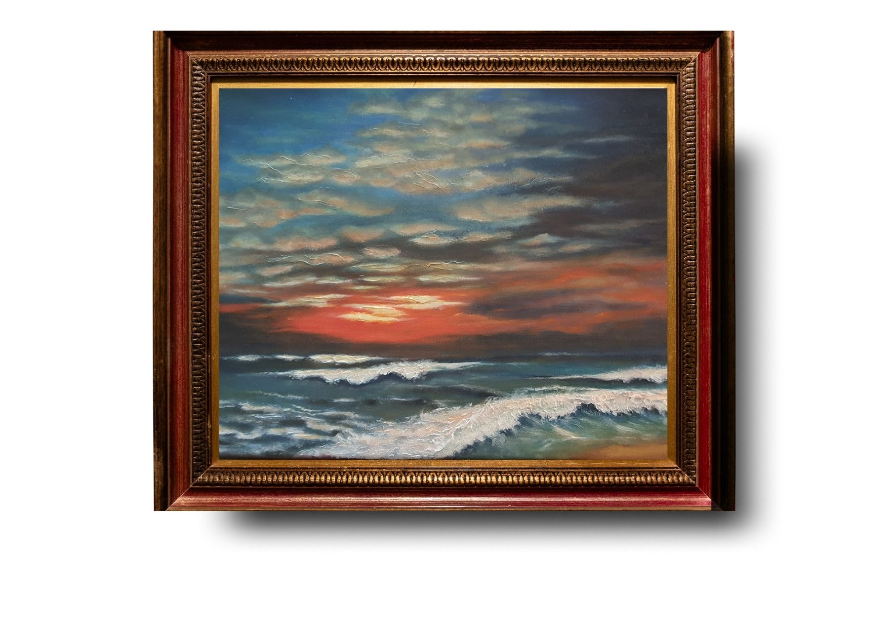Západ slunce. Rozměr 30x40 cm, částečná struktura.