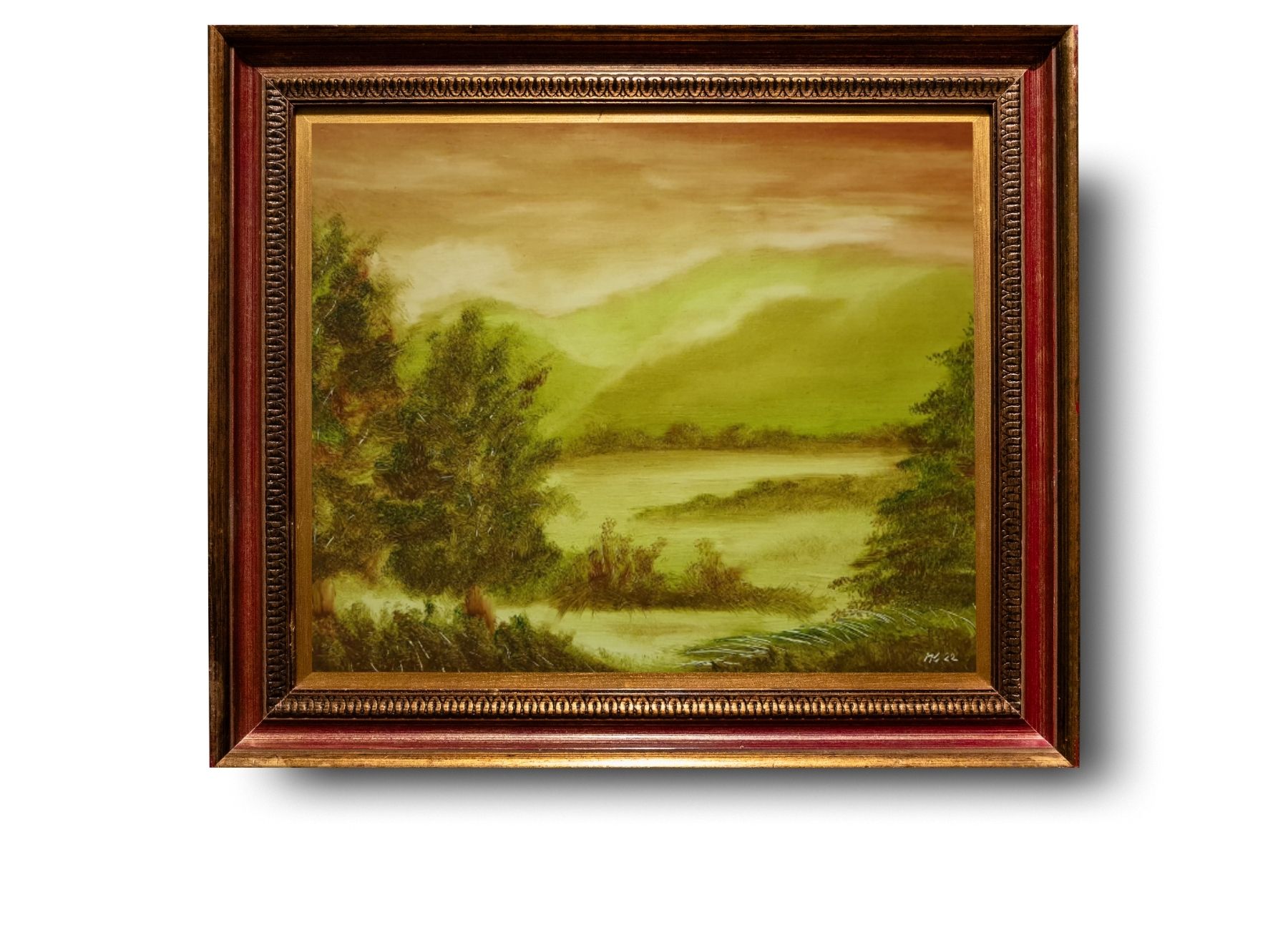 Krajina. Rozměr cca 35x45 cm. Malováno na desce.