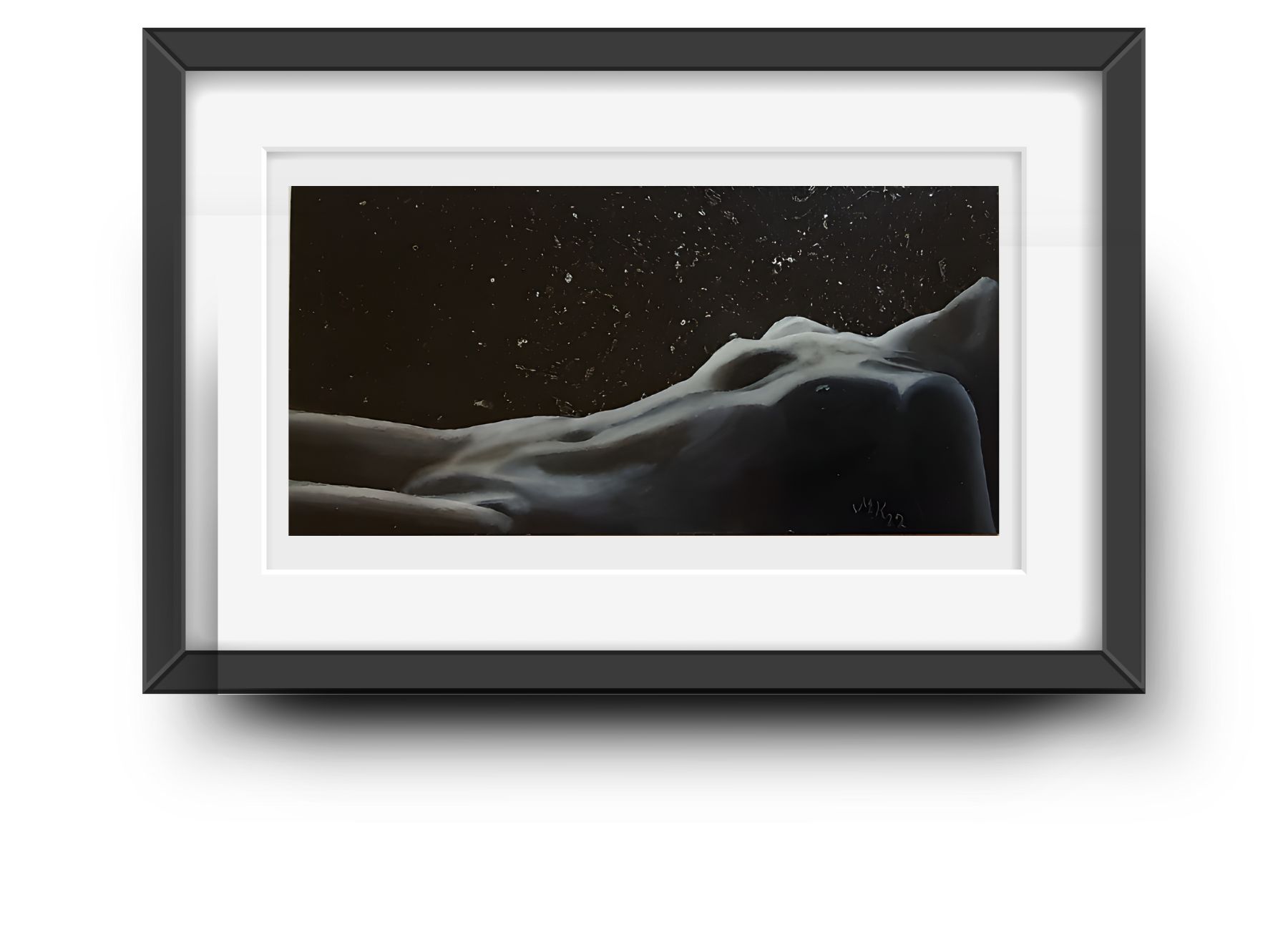 Ležící akt. Rozměr 13x25 cm. Zdroj: Pixabay. Malováno na desce.